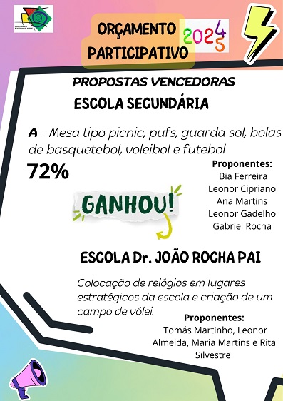 Está apurada a proposta vencedora da Escola Secundária de Vagos, com 72%, venceu a proposta A. Na Escola Dr. João Rocha Pai venceu a única proposta válida apresentada.